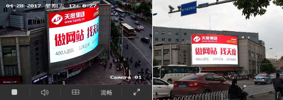 2017年4月28日,天度集團(tuán)在昆明市一二一大街(園西電子廣場)投放的253平米超大LED戶外廣告上線。