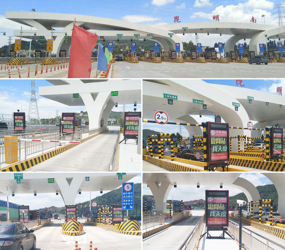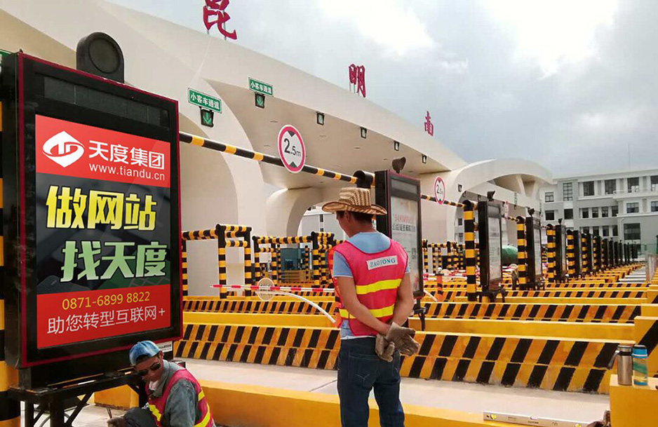 2017年8月21日,天度集團(tuán)投入巨資,在全國較大的收費(fèi)站“新昆玉收費(fèi)站”投入的35個(gè)雙向收費(fèi)口廣告上線。