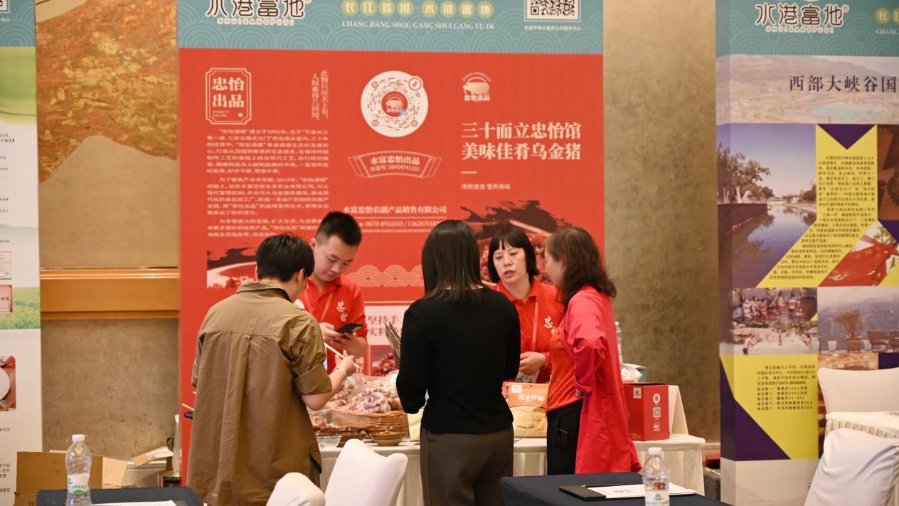 發(fā)布會接近尾聲時,主持引領(lǐng)嘉賓們前往水富特色產(chǎn)品鑒區(qū),現(xiàn)場品嘗“水港富地”品牌精細挑選出的各類名優(yōu)特產(chǎn)品,并可以去在線直播間參觀、指導(dǎo)、交流及與粉絲互動。