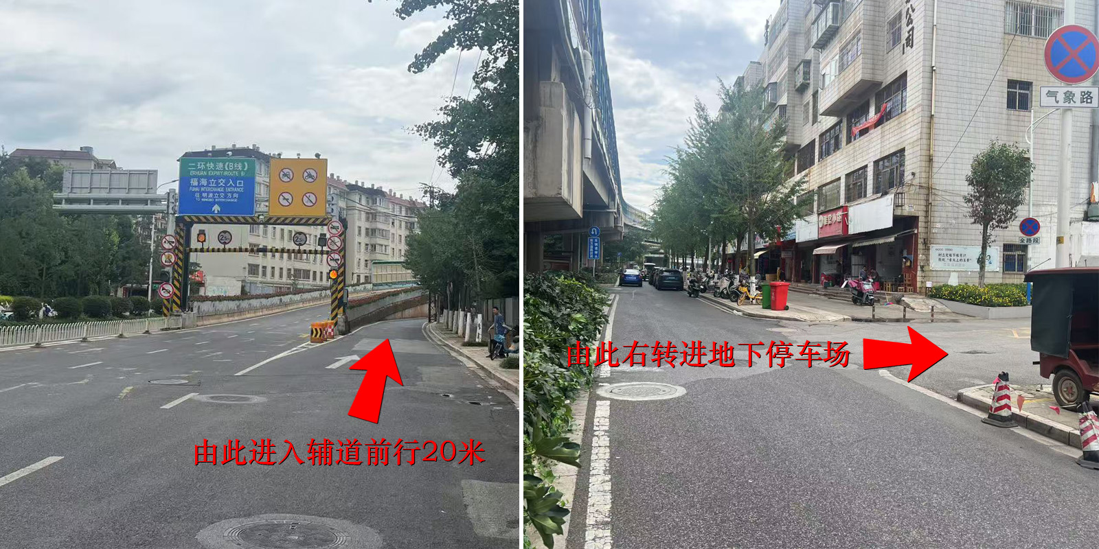 開車路線導(dǎo)航:請沿著氣象路上二環(huán)方向,按左上圖所示走輔道(不要上高架)前行20米,按右上圖所示右轉(zhuǎn)下地下停車場,進入停車場急左轉(zhuǎn)直行下負三樓,在A1地塊4棟(A座寫字樓)電梯口(天度集團專用停車位)停車,然后坐電梯至8樓。